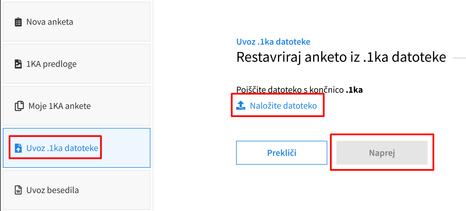 - Kliknite na gumb 'Naloži datoteko' ter poiščite shranjeno .1ka datoteko na svojem računalniku.